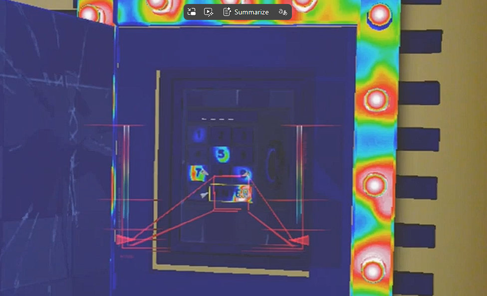 - Example of the IR Heat tool, where the player can use heat signatures to gain information from the crime scene